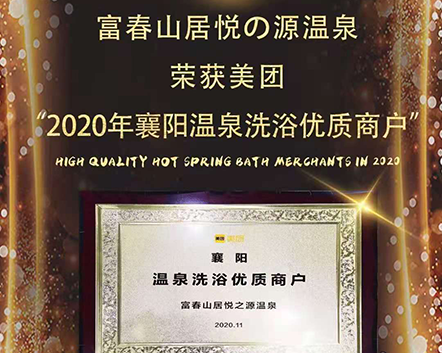 富春山居悦之源温泉荣获美团“2020襄阳温泉优质商户”殊荣!