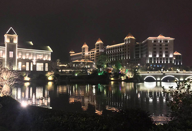 富春湖畔皇冠假日酒店:总建筑面积6万平方米。拥有客房219间、多功能宴会厅5间、会议室16间、中餐景观包房10间、自助餐厅、健身房、KTV、SPA、咖啡厅等配套功能。